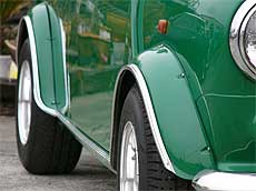 エクステリアも贅沢に仕上げました。 まず、ボディは錆び取りオールペイント。 基本をMK−III仕様としながら、センス良く、そしてレーシーにまとめています。 このままでも申し分無いほどに仕上がっていますが、ボンネットを黒くしたり、チェッカーフラッグをあしらってみても楽しいでしょう。 |