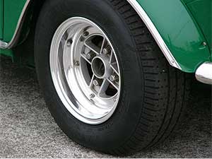 ボディ同色の6Jオーバーフェンダーが迫力のエクステリア。 レーシーな雰囲気の中にもメッキモールでクラシカルな雰囲気を漂わせています。 |