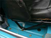 ブレーキは標準の7インチからクーパーS用の7.5インチDISKに変更。 フロント/リアのサスペンション回りは、ストラット及びナックルジョイント回りを加工し、ラリースタイルらしい少し高めの設定にしています。 車高の設定上、ショックはカヤバ製をチョイスし、絶妙なコーナリングと安定性を実現しています。 サイドブレーキはフライオフ、通常フロア下を通るブレーキラインを室内に移設。 楽しい足回りに仕上がっています。 |