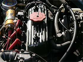 手入れの良く行き届いたエンジンルームは、今では異常な値上がりをしたチューニングヘッド(ジャンスピード製ステージ3)を搭載。 ウェーバーではなく、珍しくソレックスで吸気系をセットアップしました。 決して神経質では無く、扱い易い中にもフィーリングやレスポンス、そしてパワー感ものあるセッティング。 気持ち良く吹け上がるエンジンは、アクセルを踏むのは楽しくなりますね。 |