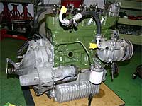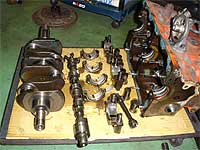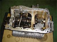 | シリンダーヘッドはバルブ等全てを外し、再度摺り合わせをキッチリ行います。 | エンジンの中心と言えるシリンダー部。 各メタル類やピストンリングは交換。 オイルポンプも容量の多いハイキャパを使用。 | ミッションでは各シンクロリング、デフのスラストメタル等は交換。 | ||