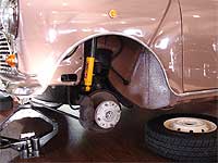 | リアのスピーカートレー下も塗装しています。 見えない部分も手を抜きません。 | バンパーの取り付け部や、パネルの合わせ目は錆びの出やすい箇所。 シッカリと錆び止めを行い仕上げます。 | フェンダー内部もキレイに仕上げています。 |