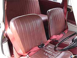 | 白いパイピングが雰囲気を高めているシート。 レザーの状態の良さが解るでしょうか。 丁寧にレストアを行い、大切に扱われていた証拠です。 |