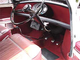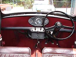 上級グレードであるカントリーマンは、3連センターメーターが標準装備でした。 また、850ccダイレクト・チェンジのギアBOXは、写真のようにフロア前方からシフトレバーが延びています。 操作は特別難しい事は無く、通常のマニュアル車を運転出来る方なら何の問題もありません。 このシフトが、オールド・ミニを操っているという気分にさせてくれます。 |