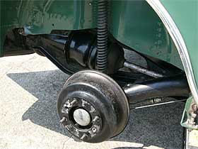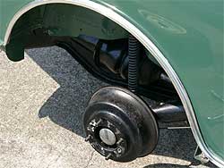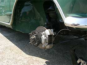 インナーフェンダーのキレイさが良く解るカットです。 フレーム等の仕上げもキッチリ行っていますね。 フロントは、現代の使い勝手も考えディスクブレーキに換装済みです。 |