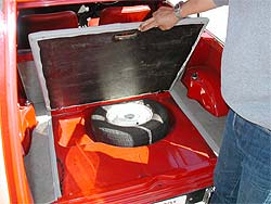 ラゲッジスペースにある蓋を開けると、そこはスペアタイヤの収納スペース。 こういった普段は目に付かない部分もしっかりとレストアされています。 塗装の状態はもちろん、錆びもありません。 |