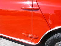 スライドガラスに深くえぐれたドアポケット。 狭いミニの室内を少しでも広く使おうと設計されました。 たったこれだけのスペースでミニの室内広く感じます。 もちろん、錆びの出やすいドア下などもキレイな状態です。 |
