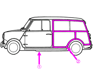 | まずはエクステリアから見てみましょう。 11年前にイギリスにてフルレストアを行い、その後日本へ入り車庫保管。 保管状態の良さと仕上げの良さから今でも大きな錆びは出ておらず、塗装の状態も良い。 また、木枠もニスの塗り直しを行っているので、腐りはありません。 適度にやれた木枠が何とも言えない雰囲気を出しています。 実車をご覧いただければ一目で解るのですが、レストア時の仕上げ方か本当に良い。 下地の処理、塗装と、ここで手を抜いているとすぐ錆びが浮いてしまったり、ボディがスッキリと見えない。 見比べると一目瞭然です。 また、エステート系のボディの弱点がリアのサブフレームの付け根。 いくら見た目がキレイでも、ここが腐っていたらアウト。 この車輌のようにしっかりしていないといけません。 サイドミラー以外はフルオリジナルのカントリーマン。 写真で全ては伝えきれません。 是非、実車をご覧下さい。 |