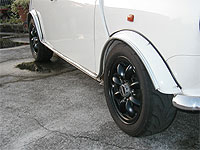 | エクステリアは、基本を押さえたドレスアップを行っています。 オーバーフェンダー、ミラー、アルミなど、インテリアと同様に走るミニを意識した仕上げです。 外装関係では、MK−1仕様やMK−2仕様など、乗られる方が好みで仕上げていくと楽しいと思います。 マフラーを変えてみるのも良いですね。 |