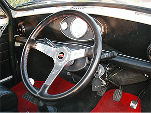 インテリアはバランス良く、チューニングカーらしく仕上げています。 センターメーター、ステアリング、シート等、一通り手の入った状態です。 アチーブ製7点ロールケージも装備。 全体的に走るミニを意識して仕上げてあります。 |