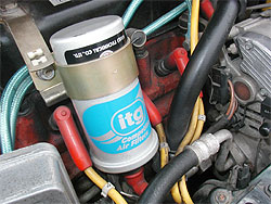 ITG製のエアクリーナーは、インジェクション車用の中では高性能。 インジェクション車でモンテカルロ・ラリーに出場した車輌にも取り付けられていた。 ウルトラのプラグコードは、価格はそれ程高くないが性能が良く、確実に電気を送ってくれる。 雨の日にリークする心配も無い。 是非、お勧めしたいパーツの1つ。 点火系ではコイルは見落とされがちだが、コイル交換による効果は大きい。 低回転から確実に点火出来、トルクアップが体感出来る。 ミニの弱点でもあるアースを強化する事により、電気を無駄なく効率的に流す事が出来る。 トルクアップや始動性向上などのメリットがある。 インジェクション車のダウンパイプは蛇腹状になっており、振動や地面に擦ったりする事により破損しやすい。 特に、ノーマルは取り付け位置が低いので、擦ってしまう可能性大。 取り付け高さの変更と排気効率を考えると「LCBを・・・」という事になる。 詳しくは「もっとイイ話し」コーナーの「LCB」をどうぞ。 |