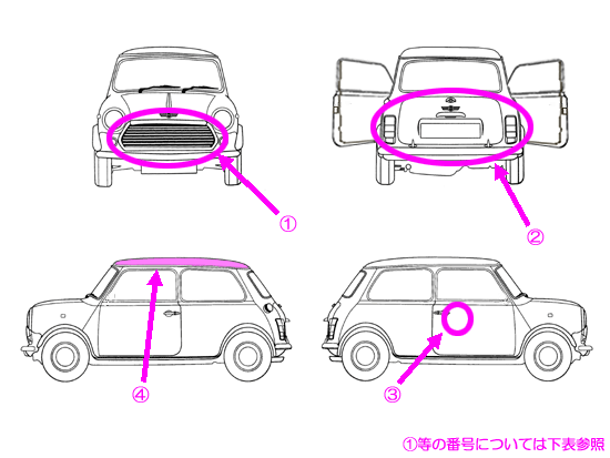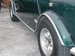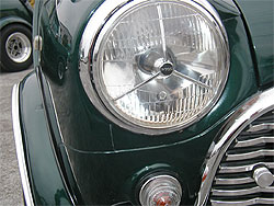 1959年、ミニの発売時にAUSTINブランドで発売されたのがセブン。 さざ波グリルが目印。 ミニの本来の姿の1つである。 ちなみにMORRISブランドで発売されたのはマイナー。 MK−1グリルに変更するには板金・塗装が必要。 スリーポイントのヘッドライトは、ミニのスタイルに良く似合う。 昔からの定番パーツ。 P700の他にPL700という物もある。 OLDタイプのマーカーは高年式の物と比べると一回り小さく、マーカーだけで顔つきが変る。 スリーポイント、フロントマーカー、そしてフェンダミラーだけでも全体の雰囲気が変る。 高年式のミニは、クォーターウインドウが羽目殺しとなってしまい開ける事が不可能となった。 しかし、クォーターが開くと風が良く抜け、窓を開けているだけでも十分涼しい。 隙間から風が抜け、リアが曇りにくくもなる。 サイドからの雰囲気も開閉式の方が良いので、この車輌には加工して取り付けている。 5.5Jのオーバフェンダーは大きすぎず、オールド風のスタイルにしても良く似合う。 やはり、ミニは本来の10インチがしっくりとくる。 開発当初、ミニは10インチで設計されただけあって、10インチを履いたスタイルでバランスが取れる。 10インチになると微妙なタイヤの外形の違いからステアリングのレスポンスが良くなったり、タイヤの厚みが増す事で乗り心地が良くなるなどのメリットもある。 MK−1のトランクハンドルはT字型をしている。 また、ライセンスランプ、プレートも高年式とは形が違う。 ライセンスプレートを取り付ける場合、元のランプの穴埋め&塗装が必要となる。 ちなみに、プレートが可動するのは、当時イギリスではトランクを開けたまま走行可能で、開けた状態でナンバーが見える様になっていた為。 小ぶりなMK−1タイプのテールレンズは、後ろから見たイメージが大きく変る。 通常のテールランプより小さい為、そのままでは取り付け出来ない。 そこで穴を埋める為にプレートを付けるのだが、プレートには2種類あり鉄の物とファイバー(プラスティックの様な物)があり、鉄のプレートでしっかりと溶接しないと直ぐに亀裂が入ってしまう。 選択する時は、必ず鉄の物を選びたい。 また、溶接時にはしっかりと錆び止め処理をしないと錆び易いので注意が必要。 |