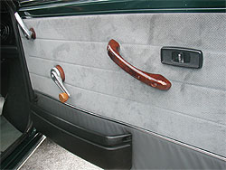 ナルディのステアリングはミニには比較的定番で、装着する人は多い。 シルバースポークの物は多いが、ブラックスポークの物は少ない。 アルミ&ウッドを組み合わせたドアハンドルとレギュレーターハンドルは定番中の定番。 マルコのウッド製ドアプルハンドルは高価な一品。 ハンドル類は意外と値段が高いので、交換を迷う人も多いのでは? |