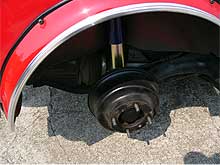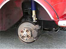| 良くメンテナンスされていたサスペンションを、ここでもう少しだけリニューアル。 ショックをGAZ製にNEW交換。 ノーマルと比較して、1ランク上の乗り心地と安定性を確保。 ブレーキ回りも含め、しっかりと点検を行います。 ミニの基本であるHi−Loキットも取り付け済みですから、ご安心下さい。 |