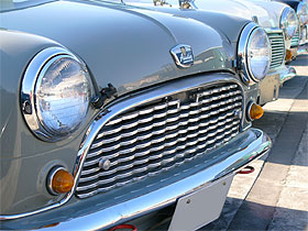 AUSTINブランドに初期モデルであるSEVEN仕様。 さざ波グリルが特徴。 MK−1グリルに変更する場合は、板金・塗装が必要となる。 OLDタイプのマーカーは、高年式のミニの物より一回り小さい。 OLDスタイルにするなら是非変更したいポイント。 グリルボタンを取り付ける事によって、工具を使わずにグリルを外す事が可能となり整備性があがる。 また、グリルをビスで留めないので、錆び防止効果もある。 取り付け時のスタイルも良いので、アクセントで付ける人も多い。 |