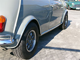 5.5Jオーバーフェンダーはボディ同色にペイント。 メッキモールを追加しアクセントを。 オーバーフェンダーにメッキモールというスタイルに憧れている人も多いのでは? |