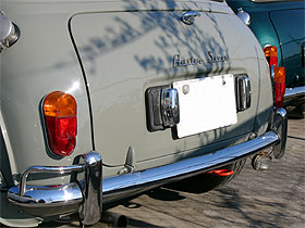 オールドタイプのトランクハンドルはT字型をしており、MK−2まではこのタイプのトランクハンドルが使用されていた。 MK−1の小振りなテールレンズを高年式のミニに取り付ける場合、板金・塗装が必要となる。 これは、MK−2以降のテールレンズ取り付け穴が大きくなった為。 MK−1タイプのレンズは小さく、ミニのお尻の丸さが強調される。 MK−2までのライセンスプレートは可動する様になっていた。 これは、当時のイギリスではトランクを開けたまま走行できた為、開けた状態でナンバーが読み取れる様になっていた。 取り付けには元のライセンスランプの穴を埋める必要あり。 |