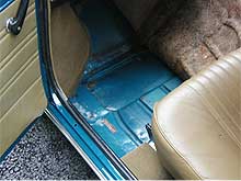 | どうですか? これでも35年経っているとは思えないほどコンディションの良いカーペットです。 | シート、ドアトリムも当時のオリジナル。 | 少し見難いと思いますが、とてもキレイな天張りです。 |