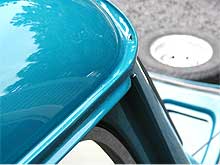 | フェンダーとパネルの合わせ目の状態もベスト。 写真では良さが伝わらないのが残念。 | ドアヒンジの部分もご覧のようにキレイな状態。 |