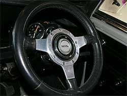 今では希少となったモトリタの小径レーシング。 レザーの状態も良く、スポーツ走行を楽しむには程よいサイズ。 モチーフはMK−III純正のものを使用しています。 ステアリングの奥には追加メーターを装備。(タコ、油温、電流計) 当時は、クーパーSといえどもタコメーターはオプションでした。 |