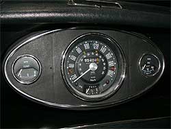 200km/hのスピードメーターはディーラー車の証でもあります。 当時はギア比に合わせてメーターの種類があり、現在のセンターメーターと比較すると抜群の精度を持っていました。 センターメーター上部のパネルに張られたレザーも、クーパーSならではの装備です。 |