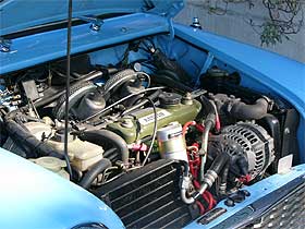 1300A+エンジン換装。 その際にはもちろん、ヘッド・シリンダー内部・ギアBOX・デフ・クラッチ等はNEWパーツにてオーバーホール。 キャブレターはSUツイン。 LCB+ステンレスエグゾーストにて吸排気系をセットアップ。 マスターシリンダーやサーボはNEWパーツを使用し、エアコン装備に対し電気容量UPの為にハイキャパシティオルタネーターを選択。 点火系のオーバーホール・強化や、電装系の引き直しも行なっています。 またアーシングも装備し、トータルでセットアップしました。 少しだけパワフルに、そしてとても扱い易いパワーユニットです。 |