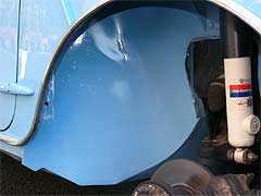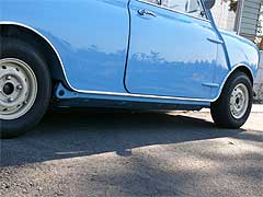 | ネガキャン、そしてスタビライザーを組んだ足回りは、走り回ることが楽しくなること間違いなし。 ホイールはクーパーSタイプアルミ。 写真から足回りだけではなく、ボディ下部のコンディションの良さも解ると思います。 |