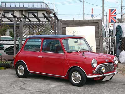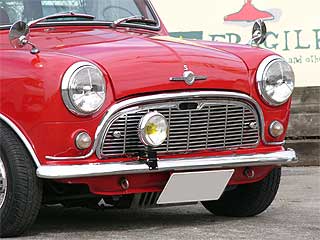 3ポイントヘッドライト、ルーフアンテナにフェンダーミラー、そしてセンターマフラーと、ミニの定番スタイルが完成しています。 ボディの状態も良く、大きな錆びや腐りは無く、塗装も塗りたてとは違う何とも言えない雰囲気を出しています。 古くからミニに乗っていた人には懐かしく、そして誰もが一度はやってみたいスタイルでしょう。 |
