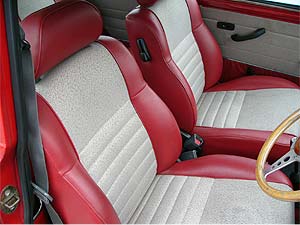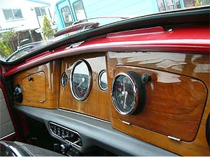 | インテリアは、本来、この年式・グレードですと、グレーの内装が標準装備。 しかし、全体の雰囲気、ボディカラーを考えて、モンテカルロ限定車の内装をセットアップしました。 前後シートだけでなく、内張りやカーペットまでモンテカルロ限定車の物を使用しています。 また、メーター回りはセンターメーターに変更し、定番であるウッドパネル、そしてモトリタのウッドステアリングでまとめています。 ウッドパネルにはスミス製タコメーターも装備。 センターメーター&ウッドパネルは、ミニならではの楽しみ方ですね。 |