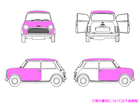 | ボディ錆び取り、ペイント ・ルーフ(ブラック) ・フロント回り ・スカットルパネル ・ドア |