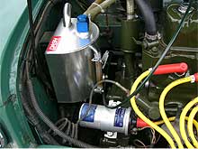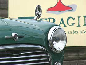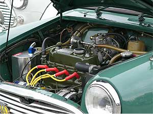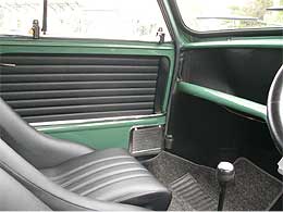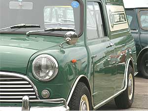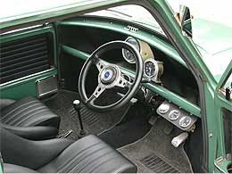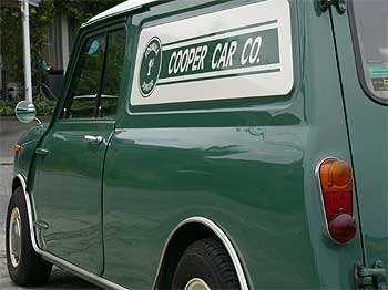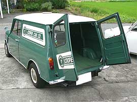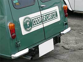 | 「COOPER CAR CO.」のロゴでデコレーションしているエクステリア。 何と言ってもBodyのキレイな車が一番!! フロント回りをモーリスMK−I仕様でまとめ、クーパーSタイプのアルミホイールに、ルーフベント、ワイパー中央寄せ加工、シビエH4ヘッドライトを組み合わせ、センス良く仕立てています。 | ![]() |
