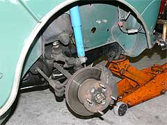 10インチというブレーキはモチロンの事、細部まで手を入れたサスペンション回り。 まず、ブレーキはディスクブレーキに換装。 その際に、十二分なストッピングパワーを発揮出来る様、4POT、しかもベンチレーテッドディスクを装備。 安定した制動力を得ています。 同時にブレーキホース類もメッシュホースへ交換済み。 カヤバのショックアブソーバー、Hi−Loキットも装備済みです。 また、ロアアームはアジャスタブルのネガキャンに変更。 ミニVANには贅沢過ぎる程の足回りのセットアップです。 |
