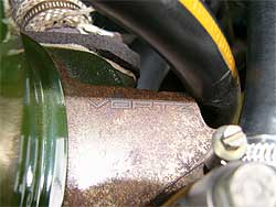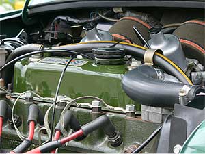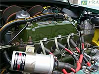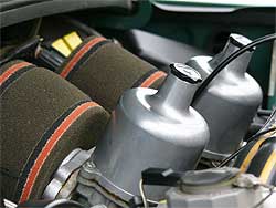 ボルツ社が選択したキャブレターはSU1・1/2ツインキャブレター。 これに3ブランチLCBを組み合わせています。 アクセルに対するレスポンスはとても良く、低回転からラフに踏み込んでも愚図つく事なくスムーズに加速していきます。 もちろん、高回転をキープして走れば、パンチのある走りを見せてくれます。 また、LCBには耐熱バンテージを巻きつけてあり、こういう細かい仕上げもボルツ社ならではです。 |