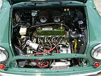 名門ボルツ社にて隅々まで手を入れられたパワーユニットは、クーパー(インジェクション)の62馬力から100馬力までパワーを高められ、高価なパーツを惜しげもなく使用する事により、素晴らしい仕上がりとなっています。 1293ccまで上げられた排気量により、低速からとても力があり、その気になればいつでも鋭い加速をしていくエンジン。 トータルバランスがとても良く、ハイパワーを求めたチューニングカーにあるような扱いづらさは全くありません。 普段の町乗りからサーキット走行までオールマイティに使えるパワーユニットです。 |