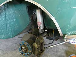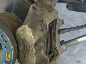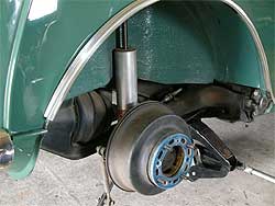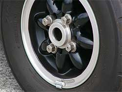 リアブレーキは、通常のミニと同様のドラムブレーキですが、ブレーキホースはステンメッシュに変更し、ネガキャンを組んでいます。 また、リアにはスタビも取り付けられ、更にコーナリング性能をアップしています。 |