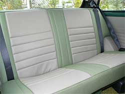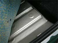 リアシートはグリーン/グレーのレザーで張り替えられ、内張りも全てグレーレザーに張替え。 インテリアに関しても手を抜いていません。 またカーペットをめくればフロアにも錆びやヘコミも無く、ベストな状態です。 |