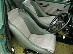 フロントシートは、通常のミニと同形状の物が標準装備ですが、ミニスポーツ製のローバックシートに変更。 コブラシートと同形状ですがレザーの質感も高く、今では作られていない貴重なシートです。 |