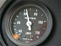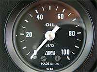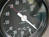 センターメーターはオリジナルのカウルにオリジナルのメーターが納められています。 全てのメーターがリムはブラックアウトされ、機械式の水温計&油圧計はCOOPERロゴ入り。 VORTZのロゴが入ったオリジナルタコメーターは、一体型のカウルに納められ、7200rpmに記されたレッドゾーンがエンジンの性能を物語っています。 センターメーター化に伴いダッシュレザー等が装備されていますが、仕上げの良さは是非実車をご覧下さい。 |
